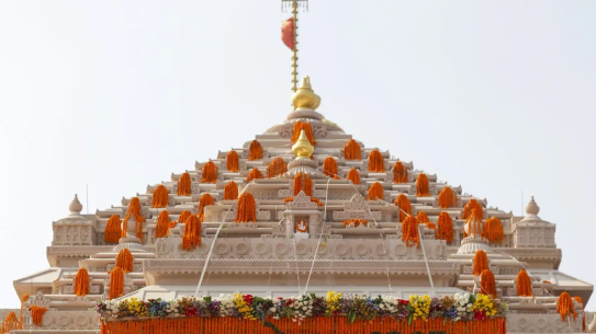 राम मंदिर पर ध्वजारोहण के समय अयोध्या भक्तिमय हो गई, चारों तरफ 'जय श्री राम' का नारा गूंज उठा।