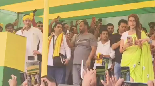 बिहार विधानसभा चुनाव के पहले चरण का चुनाव प्रचार आज समाप्त हो गया। पूरे बिहार में बड़े नेताओं की ताबड़तोड़ रैलियाँ हुईं। भोजपुरी सितारे सत्ताधारी और विपक्षी दोनों दलों के लिए प्रचार कर रहे थे। चुनाव प्रचार के आखिरी दिन लालू यादव के बड़े बेटे तेज प्रताप यादव ने दो भोजपुरी अभिनेत्रियों के साथ महुआ विधानसभा सीट पर प्रचार किया। इस दौरान तेज प्रताप यादव ने राजद उम्मीदवार मुकेश रोशन पर जमकर निशाना साधा।